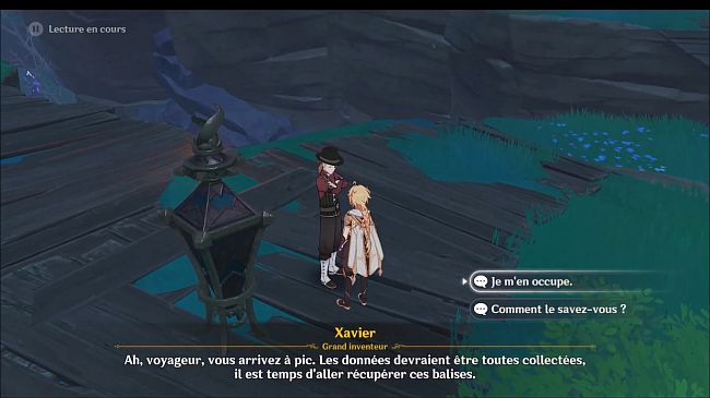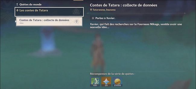 Après avoir terminé appareil de purification et que le serveur a réinitialisé la quête Contes de Tatara, retournez voir Xavier et parlez-lui.