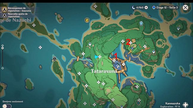 - La deuxième est à l’endroit où nous avons placé la balise 1. Cette fois, vous ne pourrez pas éviter de combattre les 2 ennemis : Pyro Kairagi et Electro Kairagi, car vous ne pouvez pas utiliser l’appareil photo en combat et ils apparaissent lorsque vous vous rendez dans la zone. Battez-les tous les deux et prenez une photo du super-fondoir.