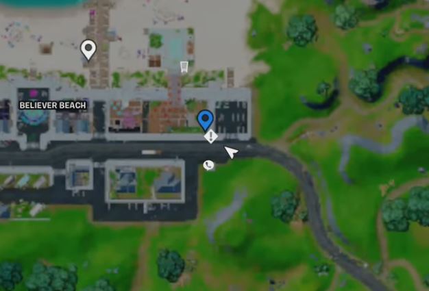 De là, vous devrez vous rendre à Believer Beach où vous trouverez deux pièces différentes. La première pièce à placer se trouve juste en face du panneau « Food, Fishing Fun » qui se trouve ici :
