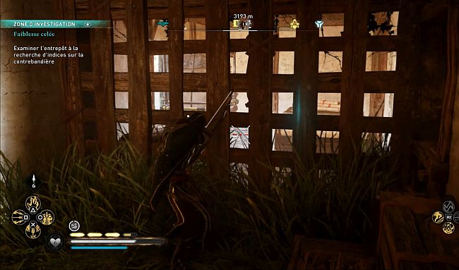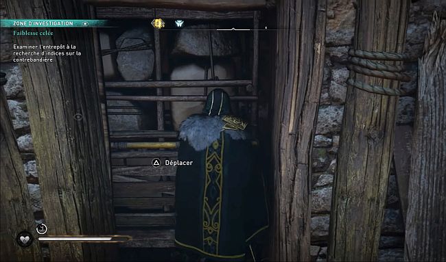 Vous verrez quelques indices à enquêter si vous utilisez votre vision d’Odin. Le dernier indice est caché derrière une étagère. Détruisez d’abord la caisse derrière l’étagère pour pouvoir la déplacer.