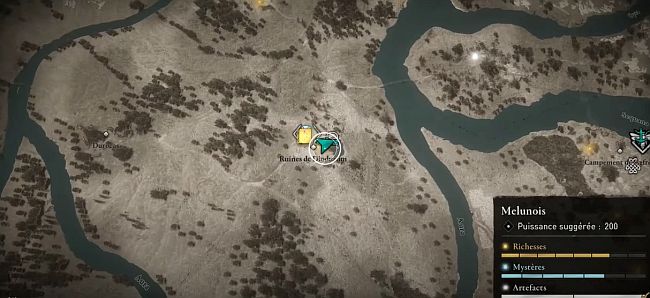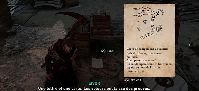 Tout d’abord, dirigez-vous vers le fort de Pruvinis et lisez la Carte de campement de voleurs située au marqueur.