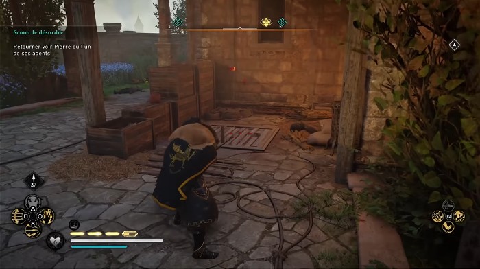 Une fois que vous aurez trouvé la clé, vous devrez quitter le manoir et vous diriger vers son coin sud-est. Ici, vous verrez quelques dalles de bois sur le sol. Vous pouvez utiliser n’importe quelle arme pour casser ces dalles. En faisant cela, vous découvrirez une échelle en dessous.