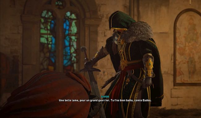 Eivor cherche à s’entretenir avec le comte Eudes avant la chute du palais et le massacre de ses occupants.