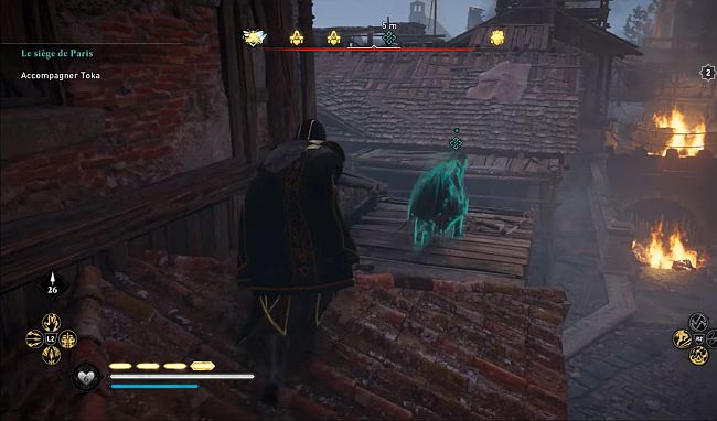 Ensuite, vous devez suivre Toka à travers les toits en vous dirigeant vers les tours.