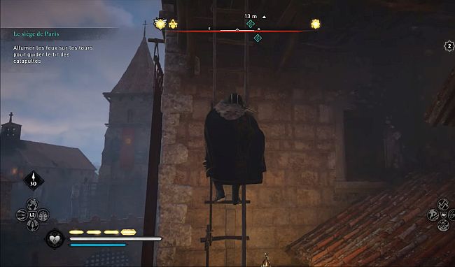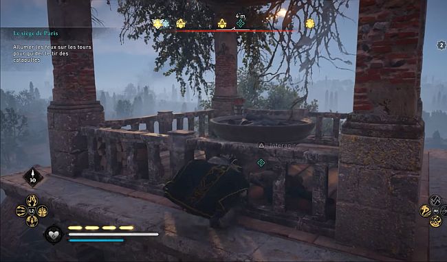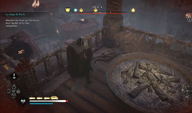 Pour guider les catapultes, il faut allumer les braseros sur les deux tours. Il suffit d’équiper une torche pour le faire.