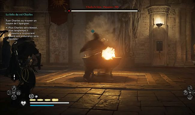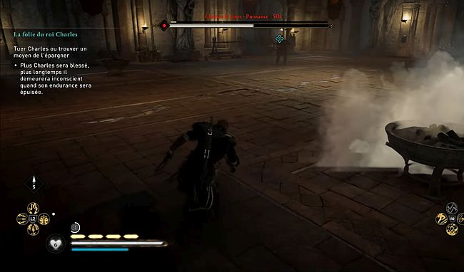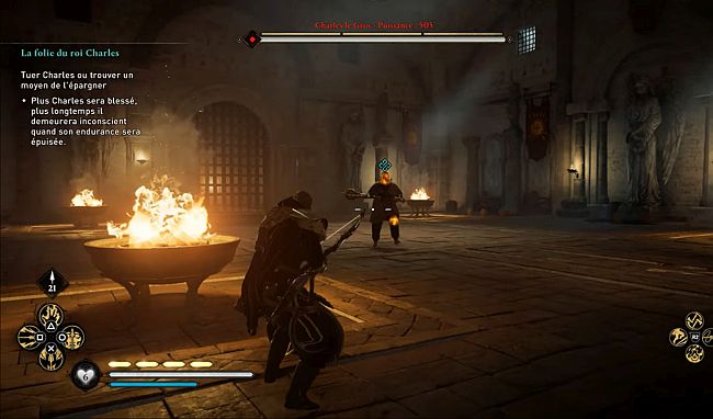 Charles ne pourra pas être tué par votre arme. Il doit être brûlé dans le feu de l’un des quatre braseros. Si vous voulez le tuer, il suffit de le brûler plusieurs fois au brasero.
