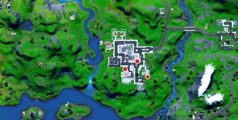 Il y a plusieurs points d’interaction possibles où vous pouvez trouver des vases de fleurs cette semaine, et comme le suggère le libellé de la quête, ils se trouvent tous à Lazy Lake. Rendez-vous dans cette ville chic de l’île de Fortnite et cherchez des vases à l’un des endroits ci-dessous. N’oubliez pas que pour cette quête, il suffit de trouver et d’interagir avec un seul vase de fleurs pour terminer le défi. Vous trouverez des vases :