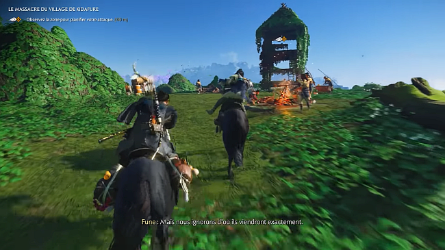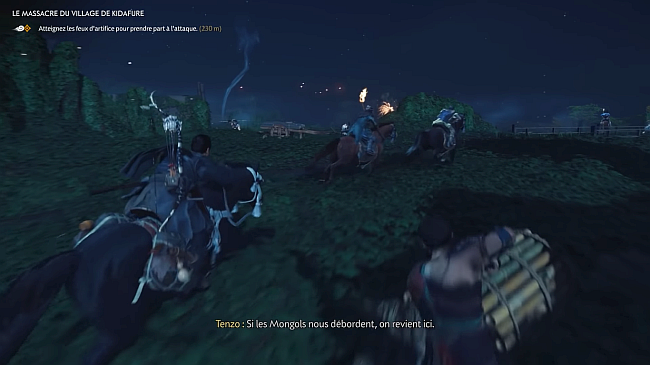 Après une conversation avec Tenzo, le combat commencera finalement la nuit. Montez à cheval et partez au combat.