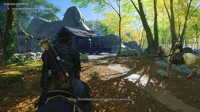 Montez à cheval et suivez Tenzo, tout en ayant une petite conversation.