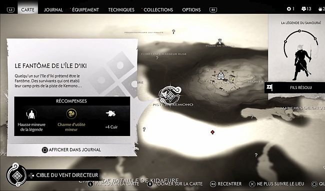 Quelqu’un sur l’île d’Iki prétend être le Fantôme. Des survivants qui ont établi leur camp près de la piste de Kemono pourraient me dire où se trouve cet imposteur.