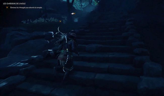 Remontez les escaliers jusqu’au temple principal. Plusieurs ennemis seront devant le temple, battez-les tous. S’ils n’ont pas été alertés, vous pouvez essayer de vaincre les premiers avec un assassinat en chaîne. Essayez de vaincre le chaman d’abord, puis les autres sont plus faciles à tuer.