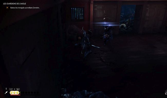 Tout d’abord, retournez dans la même maison où vous avez écouté la conversation à propos des villageois. Cette fois, vous pouvez glisser sous les trous autour de cette maison pour ramper à travers les planches. Une fois à l’intérieur, parlez aux captifs et libérez-les. Les Mongols arriveront et les ennemis apparaîtront désormais dans l’enceinte du temple. Il y a deux autres personnes que nous devons sauver. Éliminez d’abord les ennemis et faites attention qu’ils n’exécutent aucun captif. Si un ennemi a une icône de crâne rouge au-dessus de sa tête, il est sur le point d’exécuter quelqu’un et doit être arrêté immédiatement (s’il est loin, tirez-lui simplement avec des flèches).
