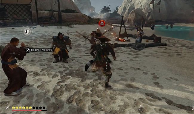 Une fois que vous vous rendez chez l’otage que vous avez choisi, vous devez toujours vaincre les ennemis sur le rivage. Vous pouvez faire des assassinats furtifs sur les premiers, tirer sur le chamane avec des flèches et vaincre le reste avec des attaques de mêlée. L’ennemi qui essayera de tuer votre otage restant sera indiqué par l’icône rouge au-dessus de sa tête. Lorsque vous voyez cette icône, tuez cet ennemi tout de suite, sinon il tuera l’otage après quelques secondes.
