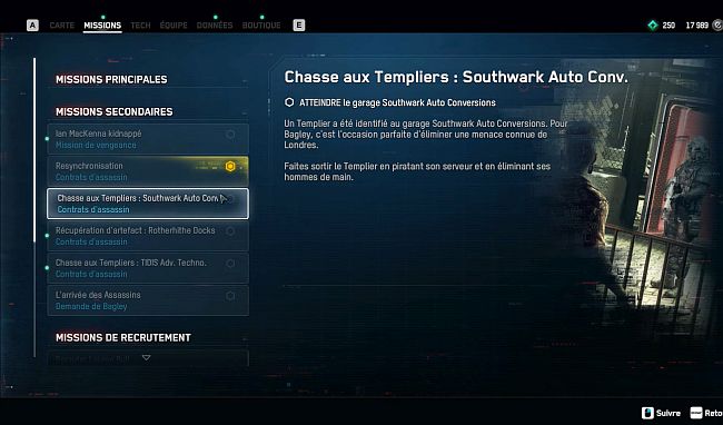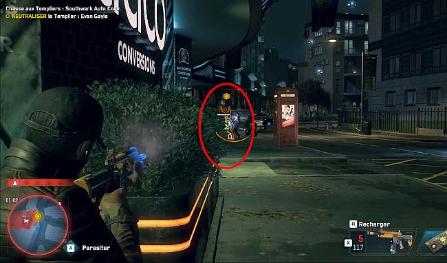 Un Templier a été identifié au garage Southwark Auto Conversions. Pour Bagley, c’est l’occasion parfaite d’éliminer une menace connue de Londres. Faites sortir le templier en piratant son serveur et en éliminant ses hommes de main.