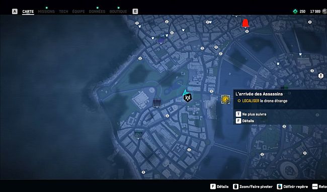 Suivez le marqueur de la mission pour accomplir cet objectif. L’emplacement du drone est indiqué sur la carte ci-dessous :
