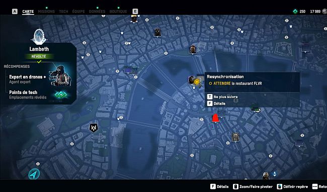 Prenez un drone pour aller au toit du restaurant et interagissez avec le point de synchronisation.