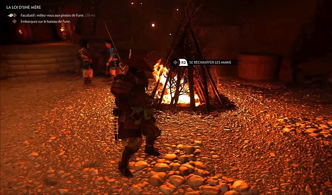 - Feu de joie, interagissez avec lui pour vous réchauffer les mains et entendre les hommes.