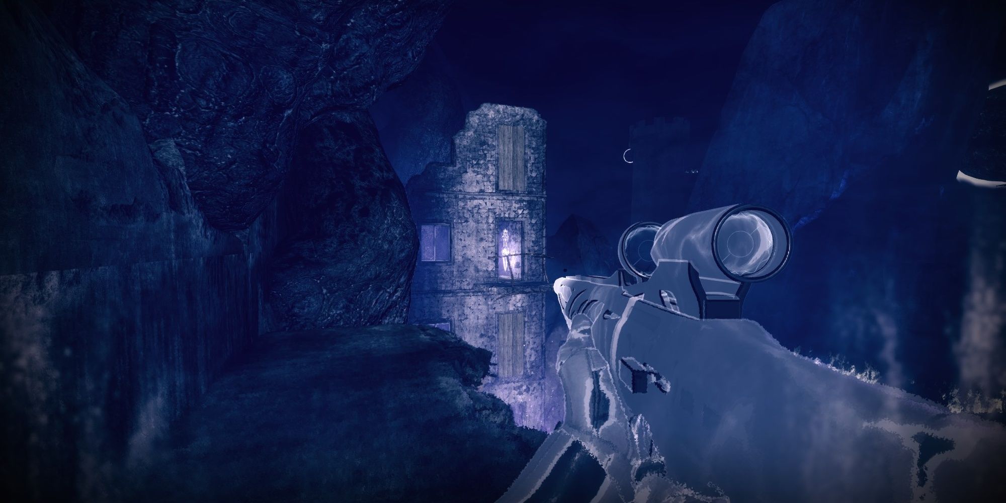 Voyagez vers le côté est de l’église. Un court chemin de pierre devrait être visible, vous menant au sommet d’une falaise. Grimpez sur le chemin pour atteindre les ruines d’un bâtiment. Vous devrez sauter sur un rocher pointu, puis grimper sur un étage. Traversez un espace pour invoquer le passage de barrière. Activez-le, puis descendez à l’étage inférieur. Le coffre sera caché dans un coin.