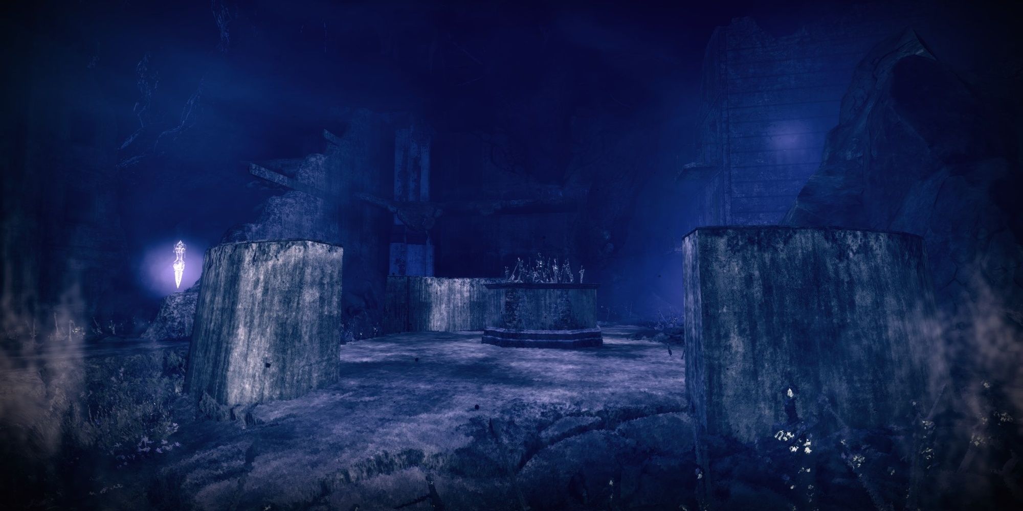 Dirigez-vous vers les ruines à l’est de l’entrée de la crypte. Sautez sur les ruines d’un pilier pour atteindre le deuxième étage. Contournez le pilier sur votre gauche pour invoquer le passage de barrière. Active-le, puis cours à travers la barrière. Vous trouverez le coffre sur une plateforme flottante.