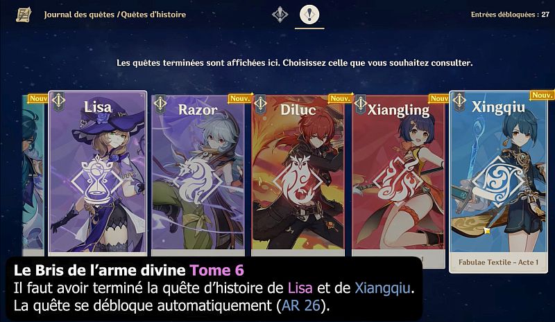 Il fau avoir terminé la quête d’histoire de Lisa et de Xiangqiu. La quête se débloque automatiquement