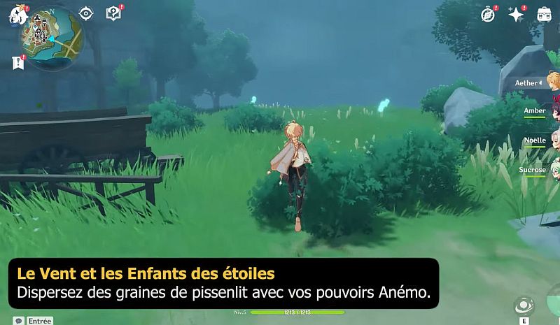 Vous devez aller devant les portes de Mondstadt et utilisez le E de votre Voyageur·se Anémo devant les pissenlits sur place.