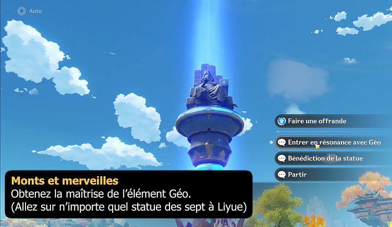 Allez sur n’importe quel statue des Sept à Liyue avec le Voyageur et sélectionnez l’option « Entrer en résonance avec Géo« . Vous deviendrez alors un Voyageur·se Géo et validerez le succès.