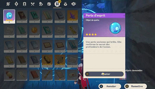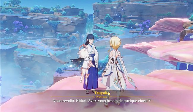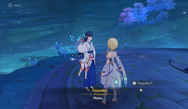 Après avoir obtenu quatre perles d’esprit, retournez au sanctuaire de Sangonomiya. Parlez à Tsuyuko qui est au sanctuaire.