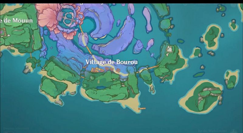 Après avoir rempli la bouteille d’eau limpide, retournez au village de Bourou et parlez à nouveau à Komaki pour terminer la quête.