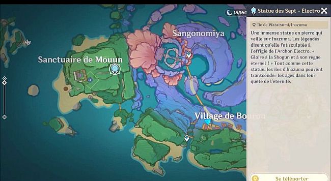 Pour la première tâche, vous devez vous rendre au sanctuaire de l’île de Watatsumi. Téléportez-vous à la Statue des Sept et dirigez-vous vers l’ouest jusqu’à ce que vous voyiez un «sanctuaire» avec un bassin d’offrandes à proximité.