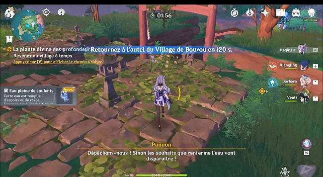Une fois que vous avez récupéré l’eau, vous devez la ramener à Komaki au village de Bourou dans les 120 secondes. Cela semble difficile, mais vous pouvez toujours le terminer en planant et en sprintant rapidement.