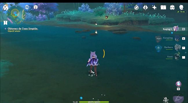 Une fois que vous entrez, vous devez aller sur le côté droit et vous verrez un point brillant. Vous devez enquêter sur 3 endroits brillants dans cette grotte pour obtenir de l’eau limpide.