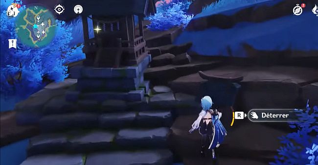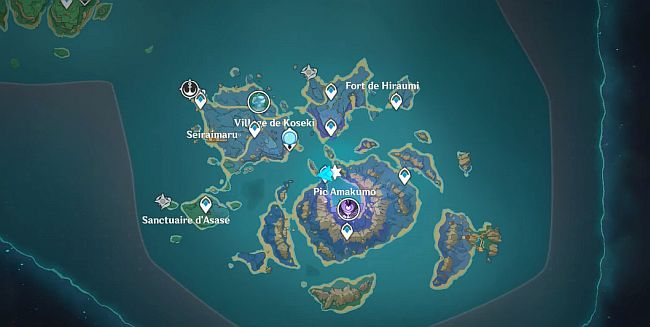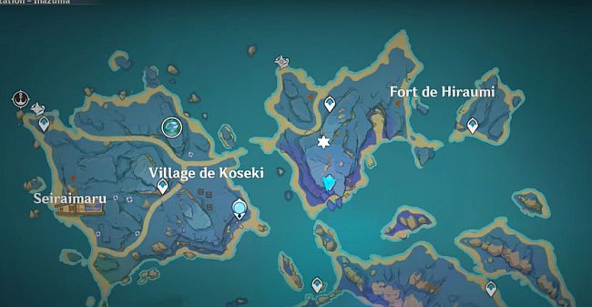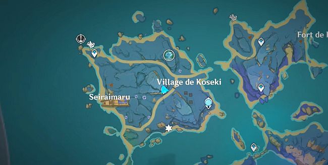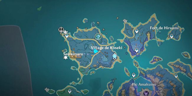 Comment activer la quête ? rendez-vous entre le village de Koseki et le Fort Hiraumi et recherchez le sanctuaire (comme indiqué dans l’image ci-dessous) où vous trouverez le dessin de l’île de Seirai qui sera nécessaire pour la quête.