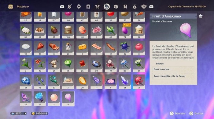 Sa description est la suivante : « Un matériel d’ascension possible pour le personnage de Raiden Shogun. On peut le trouver sur l’île de Seirai. » Il existe plusieurs endroits où vous pouvez trouver le fruit Amakumo dans le jeu.
