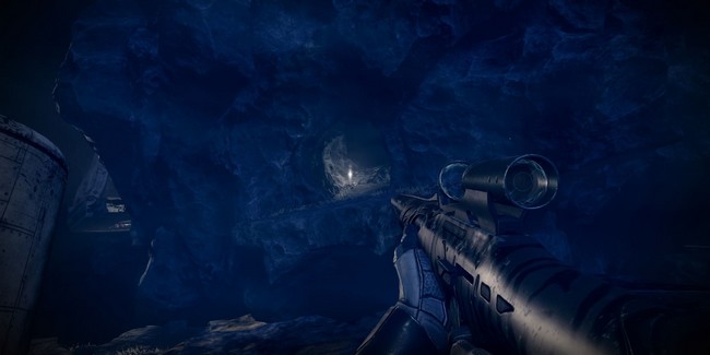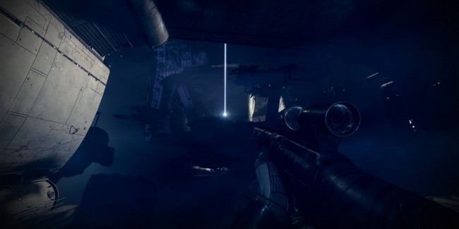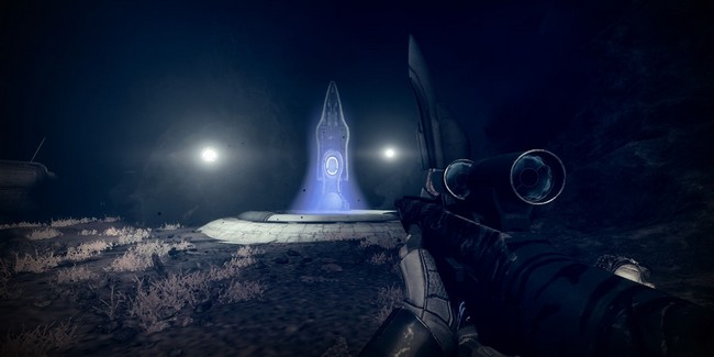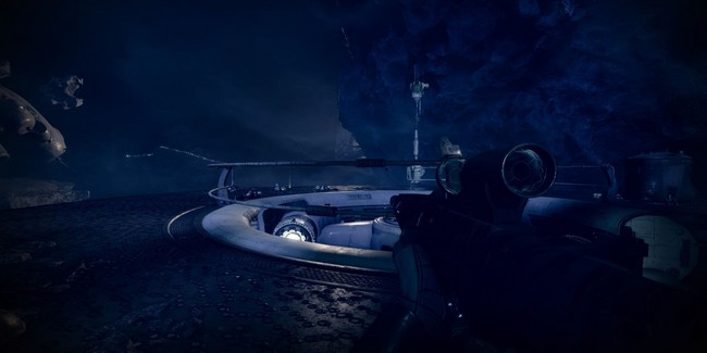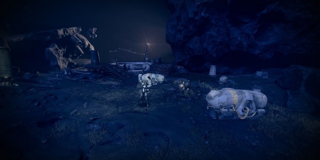 Maintenant que vous êtes de retour sur l’île centrale, cherchez des lumières flottantes qui mènent à une grotte. L’entrée de la grotte est dans une falaise face au spawn. Sautez dans la grotte et suivez le chemin. Il vous mènera à une base déchue détruite appelé Le Chantier délabré où se trouve une balise prête à être utilisée. Activez la balise quand vous êtes prêt.