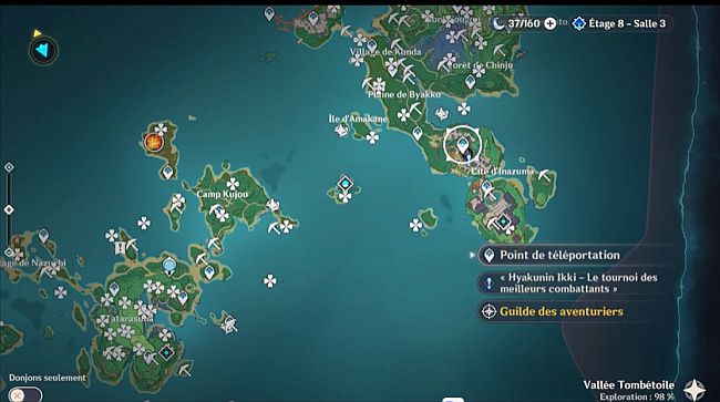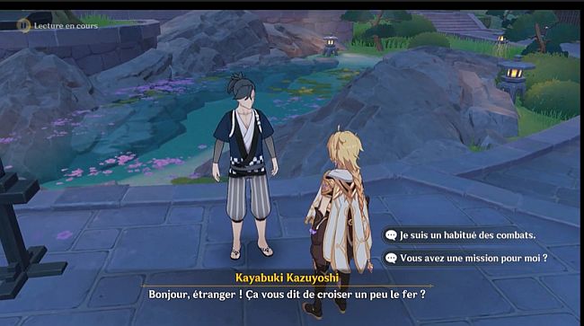 Ensuite, rendez-vous dans la ville d’Inazuma et parlez à un PNJ nommé Kayabuki Kazuyoshi. Il vous téléportera sur une petite île au sud-ouest de la ville elle-même. Il y a un portail magique ici qui vous permet de participer à l’événement Hyakunin Ikki.