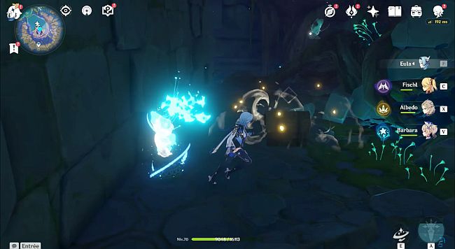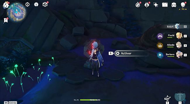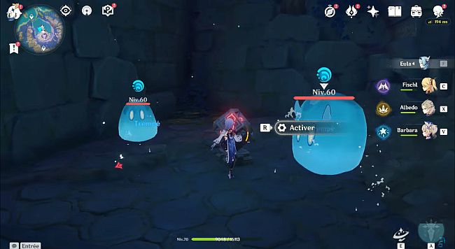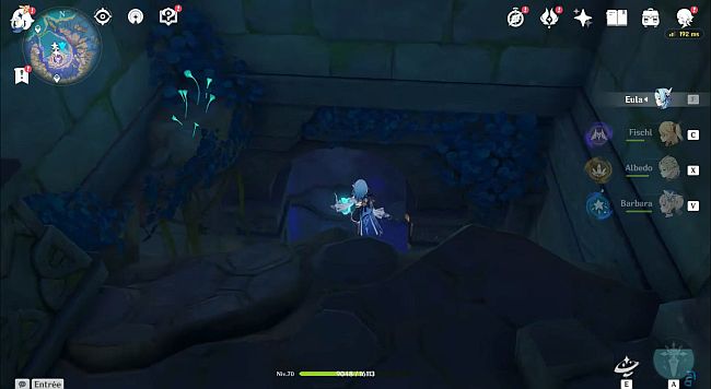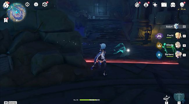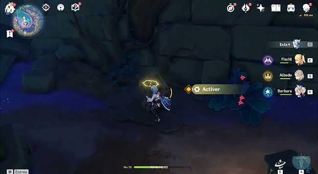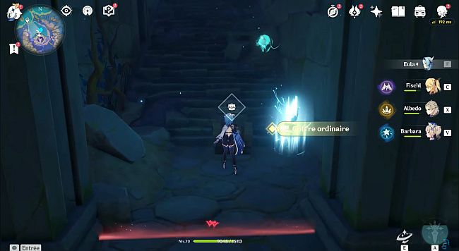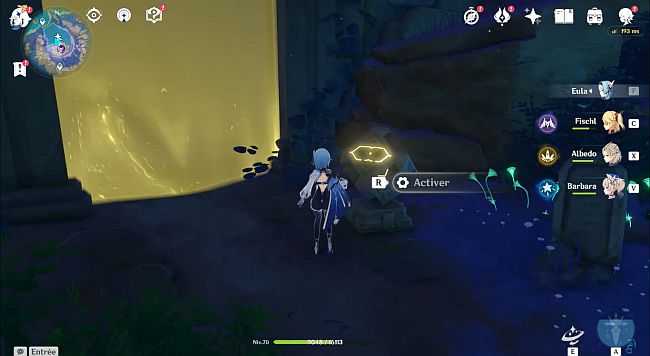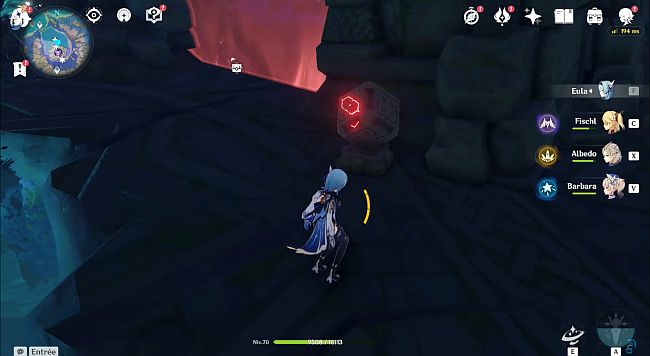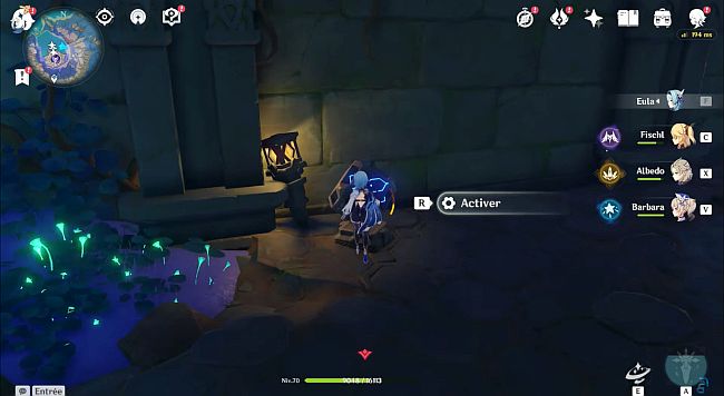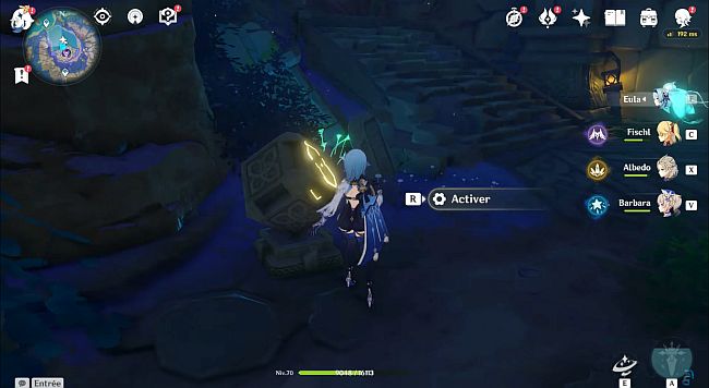Descendez tout droit jusqu’à un cube avec une lumière bleu, activez-le