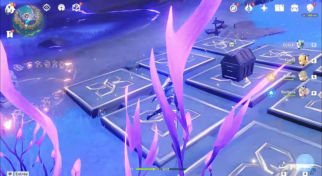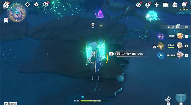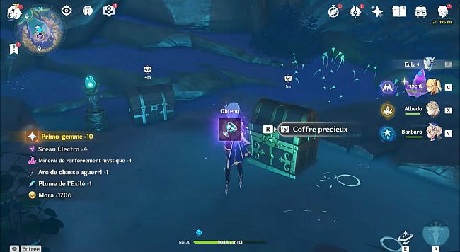 Activez le cube à côté pour faire descendre le niveau d’eau. Suivez la stèle vers le bas et vous atteindrez un coffre luxueux avec un coffre précieux.