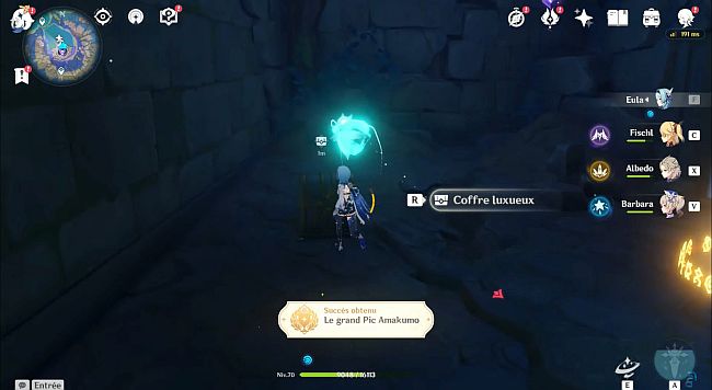 Remontez pour activer un cube avec la lumière jaune et redescendez pour arriver enfin au coffre luxueux et obtenir le succès Le grand Pic Amakumo