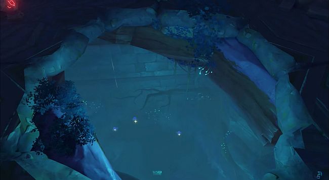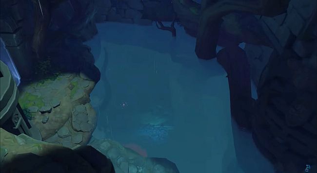 Après avoir récupéré le coffre, activez le cube à côté pour faire baisser l’eau et pouvoir descendre au fond.