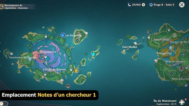 Cet article est un guide pour obtenir le succès caché : l’échouage du Limier. Pour obtenir le succès, vous devez interagir avec les 5 notes d’un chercheur dispersé sur l’île de Watatsumi.