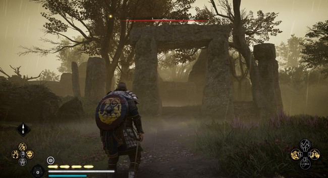 Une fois sur place, traversez la colonie avec vos Jomsvikings et restez près d’eux pour pouvoir les ranimer rapidement s’ils tombent. Vous finirez par atteindre une zone ouverte avec de grands rochers, comme le montre la capture d’écran ci-dessous.