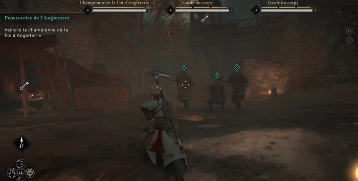 Pour le Protecteur de l’Angleterre, vous devrez vous rendre sur la rivière Severn. Il sera en état d’alerte, et aura donc les défenses les plus élevées possibles, et jusqu’à ce que vous éliminiez le garde ici, les défenses resteront élevées.
