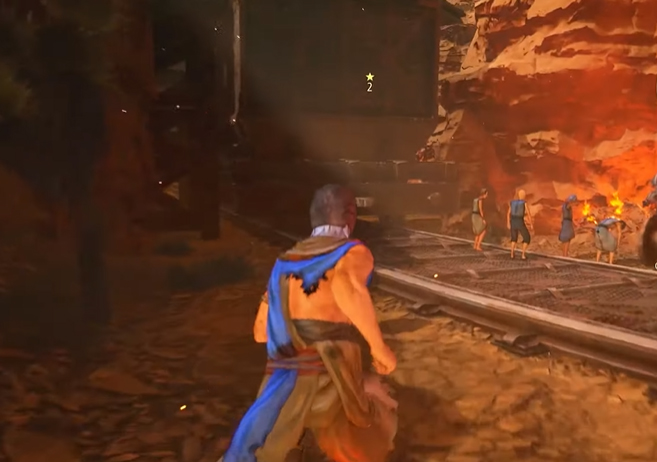 L’histoire commence par être très chaude et effrayante. Une fois que vous avez pris le contrôle de Masque de fer, parlez au Doc. Appuyez sur X pour ouvrir la carte. Les objectifs importants de l’histoire apparaissent sur la carte sous forme d’étoiles jaunes. Votre prochaine destination est marquée d’un symbole d’étoile. Le nombre qui s’affiche à mesure que vous vous rapprochez de l’étoile jaune correspond à la distance qui vous sépare de votre destination.