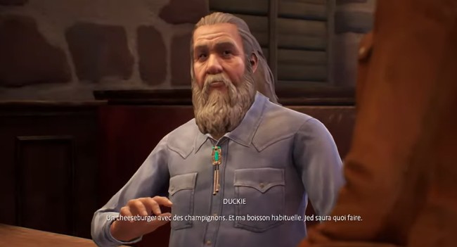 Pour commencer cette interaction, dirigez-vous vers le couple et engagez une conversation avec eux où vous apprendrez quelques bribes de connaissances. Ils vous donneront ensuite leur commande de nourriture, mais ce n’est que lorsque Jed vous la demandera que vous réaliserez que vous deviez vous en souvenir.
