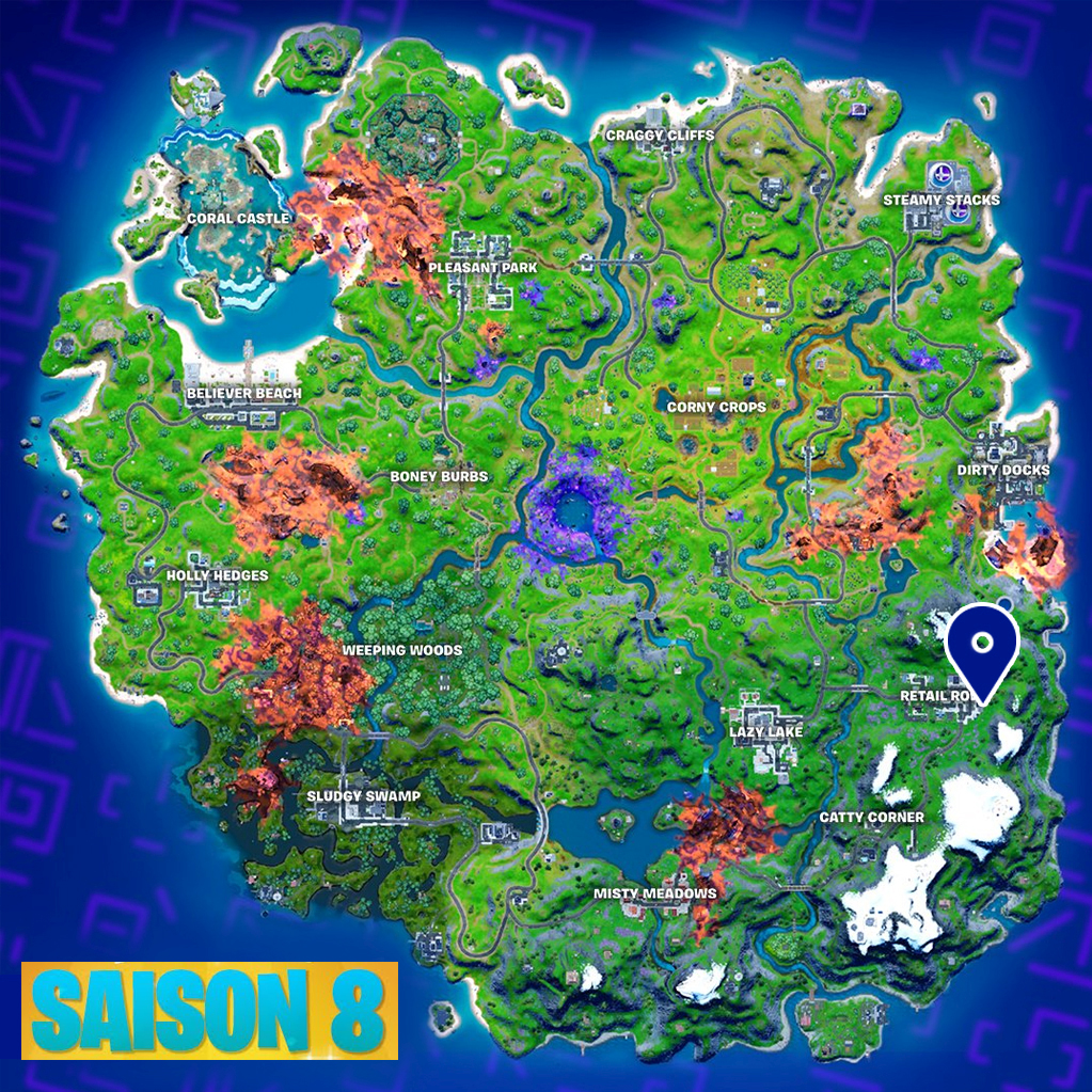 Vous pouvez trouver 3 bocaux de couleur : mauve fluo au même emplacement à chaque fois. Rejoignez Retail Row, à l’est de la carte.