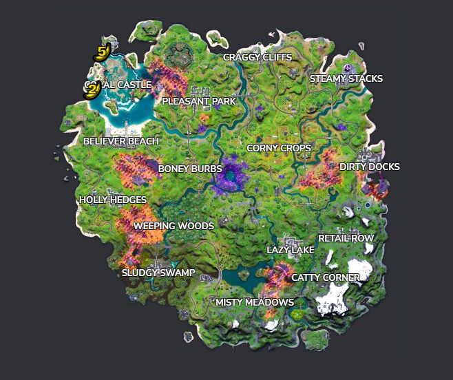 Les bananes se trouve à Coral Castle. Pour vous aider à trouver une banane dans Fortnite, utilisez la carte ci-dessous :