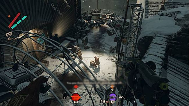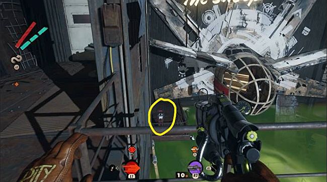 Depuis la sortie du tunnel où Colt entre dans la Baie de Karl, dans la rue juste à droite, deux Eternalistes ouvriront un colis et exploseront.
