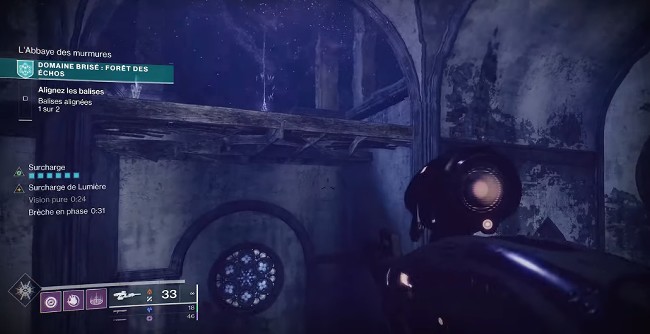 Retournez à l’église où vous avez aligné la première balise. Juste après l’entrée, vous verrez deux dispositifs de chaque côté – la Vision pure à gauche et Le passage de barrière à droite.