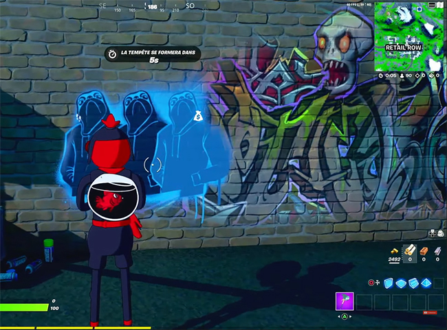L’un des deux défis qui fera partie de la collaboration est de Faire une emote devant un graffiti Cabot à capuche à Retail Row, Sweaty Sands ou Steamy Stacks.