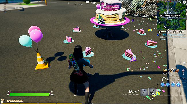 Pour manger des gâteaux d’anniversaire dans Fortnite :